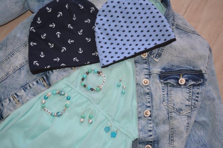 Tak jsme s Dominičkem připraveni na léto, doplňky v barvách moře a v námořnickém stylu, vše moje výroba 🙂