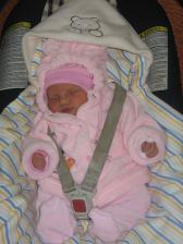 Naše princezna se narodila 4.3.2009 v 6:05 a měla 48 cm a 3,35 kg. Při porodu mne Kristýnka opravdu šetřila a za 6,5 hodin byla s námi. 🙂) *****9.3.2008 první návštěva u paní doktrorky. Zvážila nás, máme 3,24kg od soboty kdy nás pustili domů jsme přibrali 8 g 🙂). Dostali jsme vitamíny, mastičku na pupíka a pochvalu jaký jsme šikovný holky.*****18.3.2009 druhá návštěva v poradně. Vážíme 3590g 🙂) jsme prý ukázkový a začíná nám krásně jít pasení koníků 🙂) až jsme paní doktorku překvapili.****14.4.2009 - kontrola kyčlí. Máme je dle pana doktora ukázkové, takže zahazujeme široké balení a dáváme jen papírovku. Mám radost. Už zase ve všem oblečení plandáme. 🙂)****16.4.2009 - další poradna u paní doktorky. Měříme 53 cm a vážíme 4,30kg.****28.5.2009 - Dostali jsme se do programu na výzkum nové vakcíny proti Meningokoku typu B. Takže jsem dostala hned tři včeličky.Na meningokok, prevenar a hexa vakcínu. Taky nám brali krev z hlavičky aby viděli, jak si Kristýnka vytváří protilátky. Smyslem celé studie je vyzkoumat, jak nová vakcína reaguje v kombinaci s běžným očkováním. Maminka poctivě celý týden měřila teplotu a zapisovala veškeré reakce které se objevily.****3.6.2009 Prohlídka ve 3 měsících. naše míry jsou 5300g a 56cm. Paní doktorce jsem ukázala jak krásně pasu koníky, otáčím se a žvatlám no a ona mi za "odměnu" píchla náušničky, takže už je ze mne parádnice.****3.7.2009. Prohlídka ve 4 měsících. Naše míry, 6,10 kg a 60 cm. Jsem holka šikovná. Krásně pasu, otáčím se na bok, vypravuju o sto šest a chvilku jsem vydržela po přitažení v sedu. Takže velká pochvala od paní doktorky.****12.7.2009 začala jsem papat svoji první zeleninku.****14.8.2009 maminka s tatínkem mi koupili novou káru a začínám jezdit ve sporťáku.