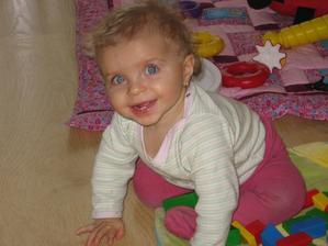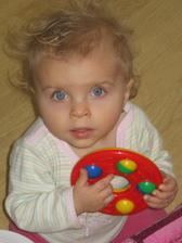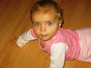 Letí to letí. je nám 5,5 měsíce, začala jsem jezdit ve sporťáku, mám o všechno zájem a vyžaduju mnohem více pozornosti. Jsem prostě jejich sluníčko.****2.9.2009 poradna u paní doktorky v 6 ti měsících. Míry 65 cm a 7 kg. jsem prý moc šikovná holčička.****6.9.2009 Vítání občánků. Dostala jsem krásnou panenku, maminka kytičku a korunky za které mi koupí parádní jídelní židličku.****4.11 poradnav 8mi měsících. Naše míry 65cm a 7,5 kg. Jsem prý prý prďolka ale šikovná. Mám dva zuby dole, lezu jako drak a pěkně žvatlám.*****6.1.2010 kontrola v 10ti měsících a mám 8,10 kg a 68 cm. No žádný velikán nejsem ale co je malé to je milé.*****Mám za sebou oslavu prvních narozen. Dostala jsem spoustu dárečků a nádherný dortík. Bylo to moc prima. Moje míry v 1 roce 69cm a 8,80kg.