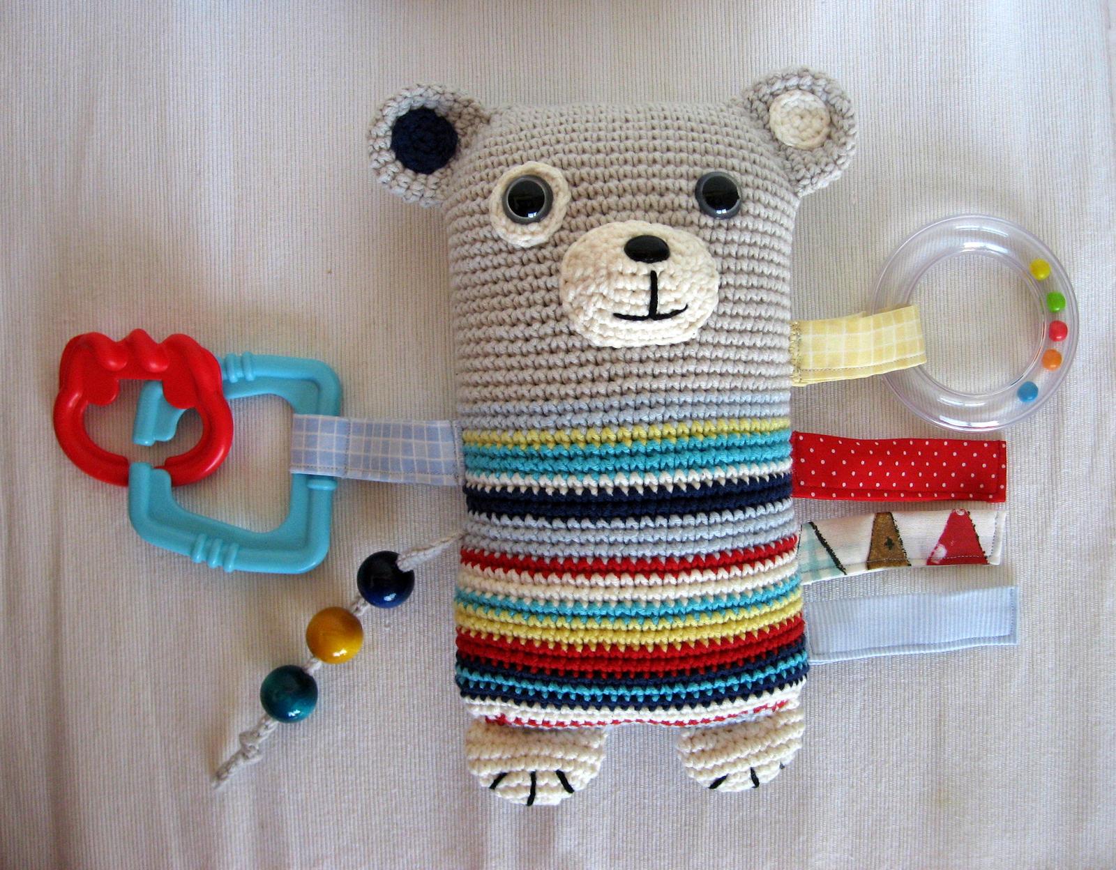úžasné! veľmi rada by som také uháčkovala mojej malinkej, ktorá je zatiaľ v brušku 🙂 ten medvedík je háčkovaný dookola a tie prúžky látky sú tam potom prišité až keď je už hotový? alebo sa to nejak zašíva do švu?? z tých fotiek nevidím jak je to urobené na tom boku...díííky! hej a inak krásne farby!