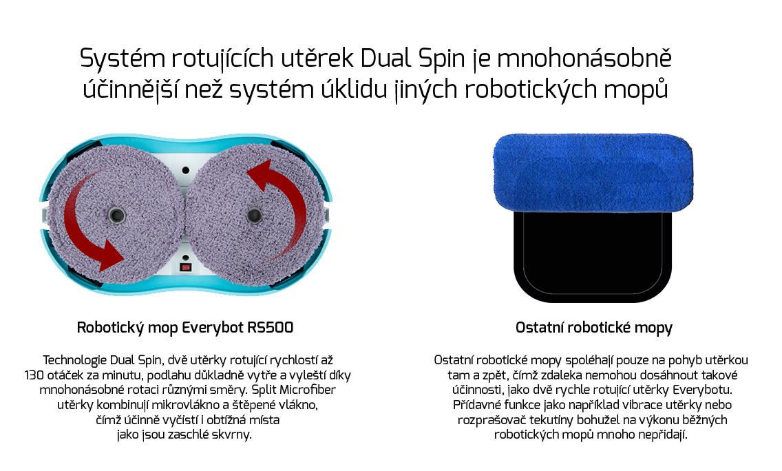 A když je podlaha po zásahu robotického vysavače zbavena prachu a nečistot, nadešel čas pro robotický mop. Mnoho zákazníků podlehne pokušení mít robota, který zároveň vysává i vytírá. I taková zařízení existují, ale bohužel prozatím nedosahují vysoké účinnosti. Do tak malého robota je zkrátka náročné vměstnat dvě naprosto odlišné funkce, jakými jsou vytírání a vysávání. Ve výsledku pak ani jedna z prací není vykonána tak důkladně, jako když máte dva přístroje, které se na 100 % věnují buď pouze vysávání, nebo vytírání.