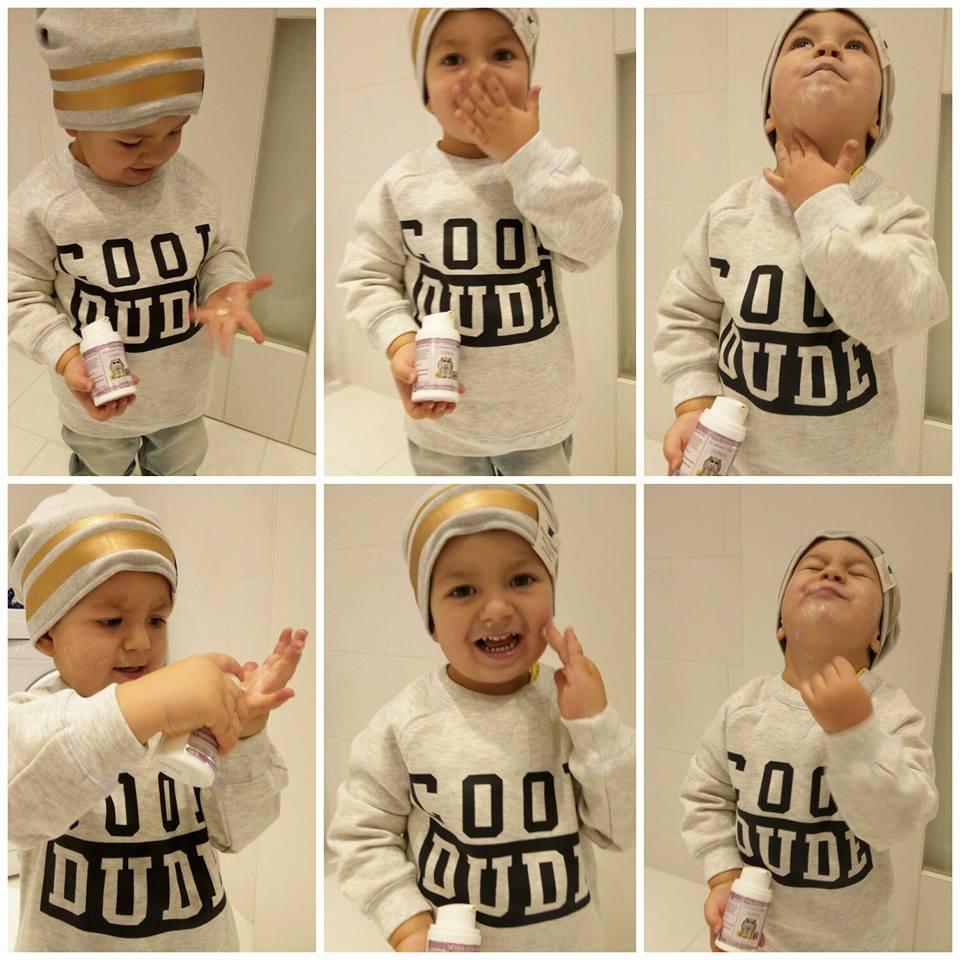 První, co mě zaujalo, byl vzhled balení, oceňuji jejich jednoduchý vzhled uzpůsobený uživatelům, tedy dětem, líbí se mi, že společnost jde svou cestou, nestydí se za svůj původ a nemá potřebu se přizpůsobovat vzhledu zahraničních výrobků. Synovi se obaly velice líbili, dlouze si je prohlížel, poznal, že se jedná o kosmetiku pro něj.