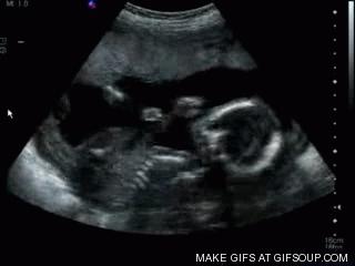 ilustrační GIF miminka na ultrazvukovém vyšetření, v tomto případě dle lidové moudrosti by miminko na obrázko mělo být děvče https://media.giphy.com/media/kvKSbXJfQKOY0/giphy.gif