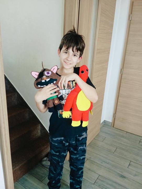 Nemohli jsme herní plyšáčky sehnat, tak jsme si vyrobili vlastní 🙏❤️ ta spokojenost stála za to 🥰 PS. chocholka je následek tvrdé práce 😁