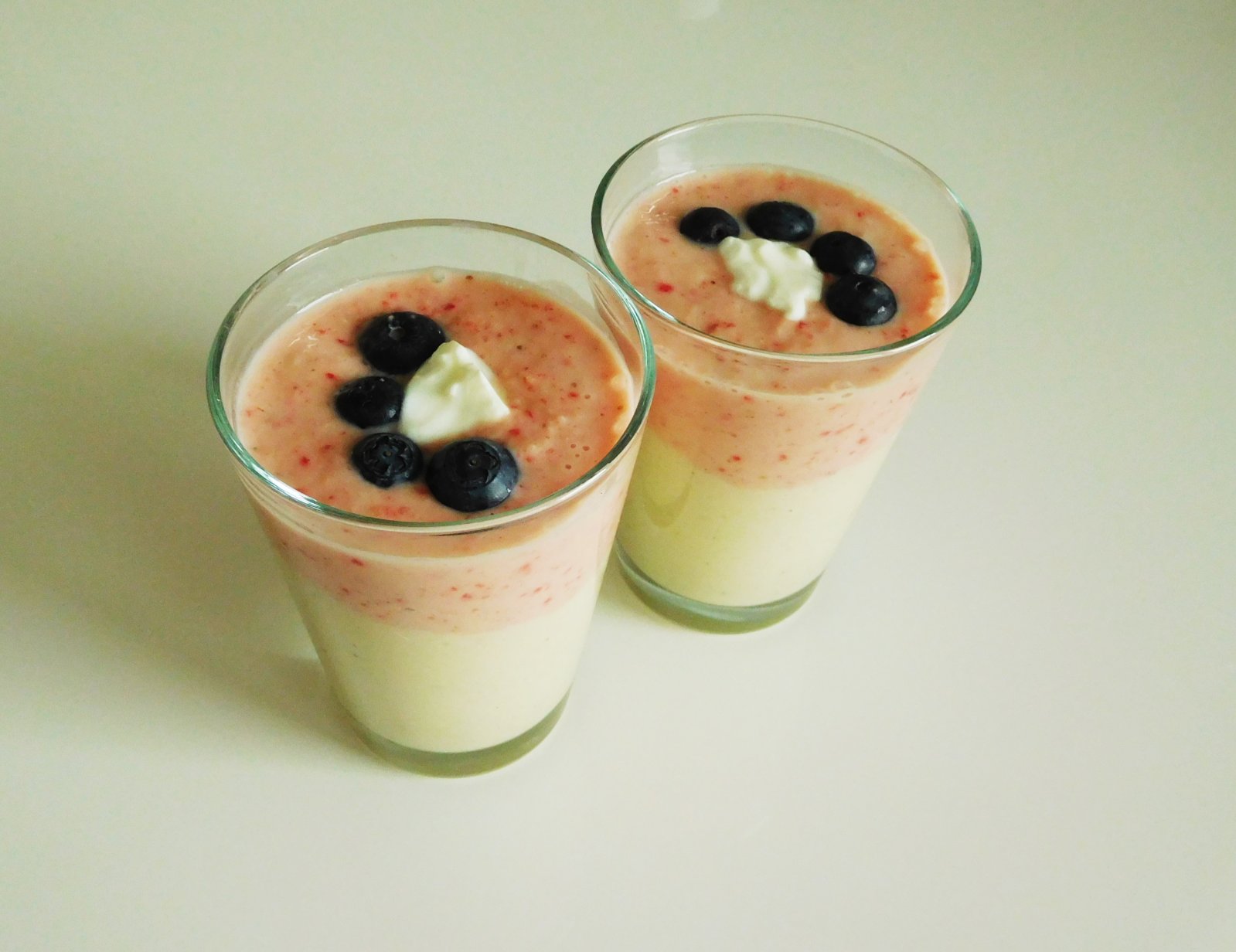 1 banán1 jablíčko2 velké jahody3 lžíce bílého jogurtu6 lžiček jahelných vloček (dle návodu uvaříme kaši)borůvky