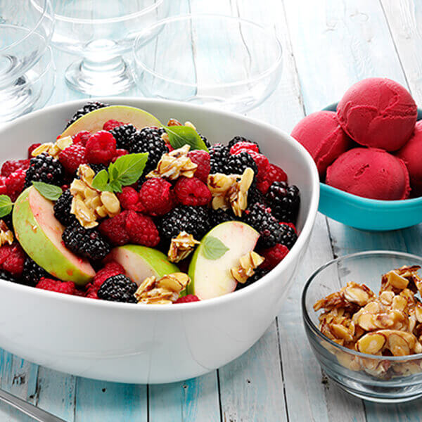 Top salát (nikdy nezbyde ani kousíček) je u nás ovocný se skořicí a ořechy. Postup je také jednoduchý: Nakrajím oblíbené sezoní ovoce na kostičky (meloun, jablka, broskve, meruňky, hrušky, hrozno, borůvky, ostružiny, maliny, banán, pomeranč..) a připravím zálivku z vody, medu, citrónové šťávy a skořice. Posypu nasekanými ořechy a hotovo. Dochutit můžete i třeba bílým jogurtem nebo zakysanou smetanou.