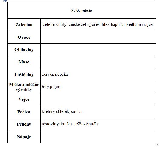 týden se přidá nová potravina k již známé a vyzkoušené potravině