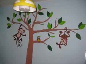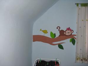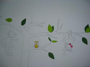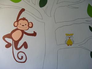 nalepky na zed mi prisli hrozne umele a hlavne pri malych detech dlouho nevydrzi, tak jsem se rozhodla, ze si obrazky na zed sama namaluju 🙂 S vysledkem jsem spokojena a dcerka opicky miluje 🙂