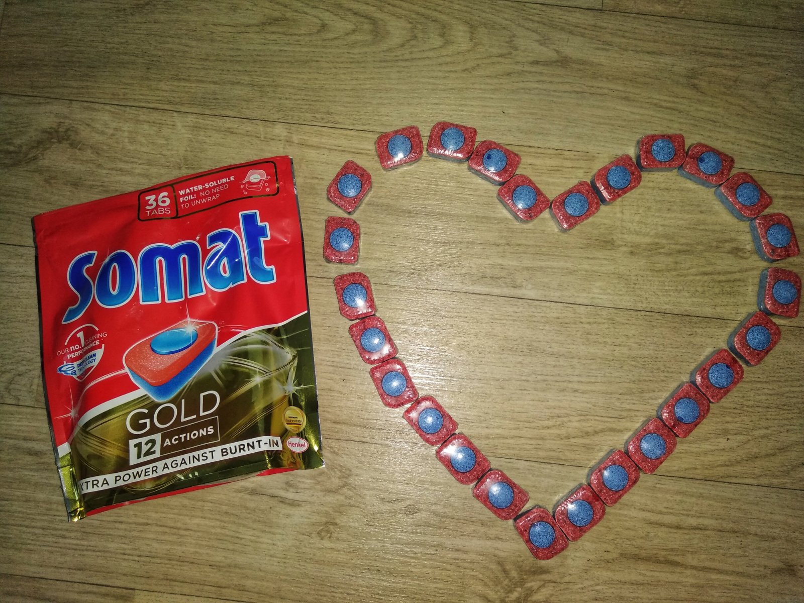 Tablety do myčky moc nevyužívám, protože mi vždy po skončení programu zůstal v zásobníku zbytek nerozpuštěné tablety jiné firmy/ značky a také jsem měla sklo upatlané od špatně rozpuštěné soli atd. Proto bylo pro mě další výzvou vyzkoušet tablety do myčky Somat Gold. Tablety od Somatu jsou opravdu oproti jiným tabletám skvělé. V zásobníku nikdy nezbyl kus nerozpuštěné tablety a nádobí se krásně lesklo. Žádné upatlané sklo a špinavé nádobí na mě po skončení programu nečekalo.