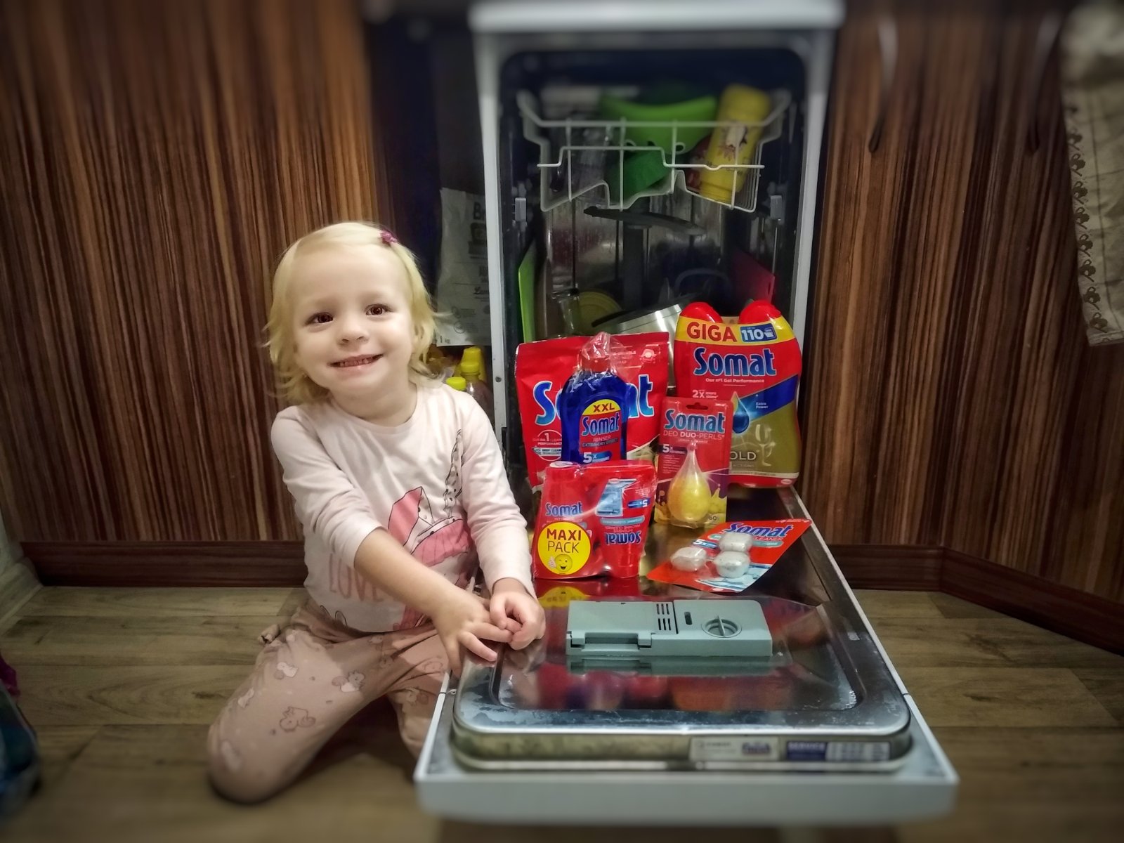 Jako další jsem použila osvěžovač do myčky Somat s vůní pomeranče a citrónu. Osvěžovače běžně nepoužívám, protože doposud nebylo třeba, myčka nezapáchá, nic méně v rámci testování bylo potřeba vyzkoušet. Vůně není agresivní ba naopak, je jemná a opravdu příjemně provoní i celou kuchyň. Takže budeme vůni využívat i nadále, i když nebojujeme se zápachem z myčky. Opravdu tento osvěžovač bude slušet každé myčce 🙂