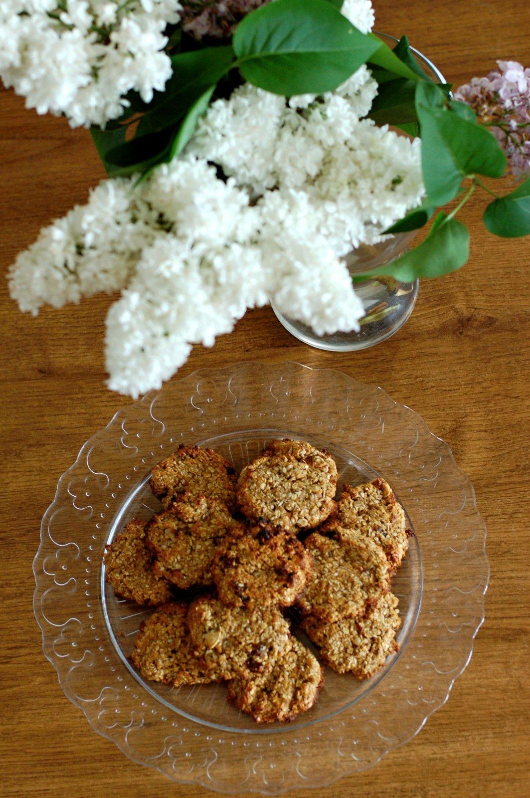 autorRozdrťte kukuřičné lupínky a ovesné vločky. Nasypejte do velké mísy, přidejte slunečnicová a sezamová semínka, pokrájené rozinky, strouhaný kokos, sekané mandle, prášek do pečiva, skořici a cukr. Vše dobře promíchejte. Do mísy přidejte jogurt a vejce. Opět pořádně promíchejte, vznikne lepivá směs. Můžete přidat i jakékoliv další suroviny, např. dýňová semínka, čokoládu, sušené ovoce, ořechy, med, .... Na plech s pečícím papírem kladete studenou lžící malé hromádky, které upravíte do tvaru sušenek. Můžete ukládat klidně vedle sebe, drží tvar. Těsto vyjde zruba na 50 sušenek. Pečte při 180 stupních asi 10 min. dozlatova.