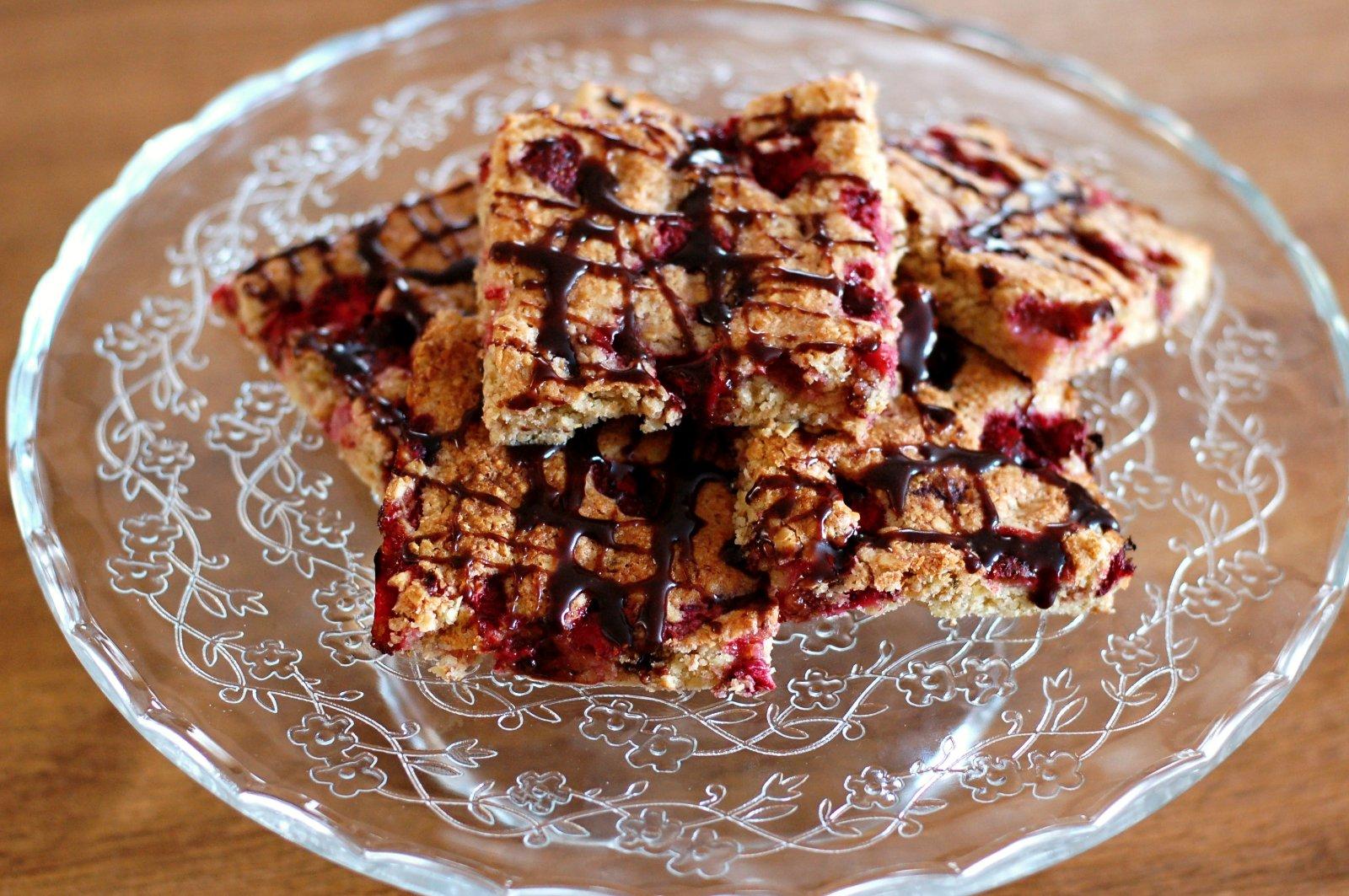 Troubu předehřejeme na 180C. Máslem vymažeme čtvercovou formu o straně 22 cm. Z pečícího papíru ustřihneme pruh široký jako dno formy, ale dlouhý tak, aby pokryl dno i stěny a ještě přesahoval přes okraje. Usnadní to vyndavání. V míse smícháme mouku, kypřící prášek, cukr a vločky. Přidáme vejce, máslo a jahody a promícháme. Směs přesuneme do formy, uhladíme a pečeme cca 20 - 25 min dozlatova. Necháme zhruba 10 minut vychladnout a poté vyndáme na prkénko. Nožem naznačíme linky, podle kterých potom nakrájíme 16 čtverečků. Čokoládu rozpustíme a pomocí lžičky jí ozdobíme upečený čtverec. Když čokoláda ztuhne, nakájeme na 16 čtverečků.