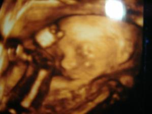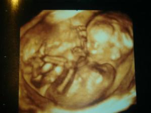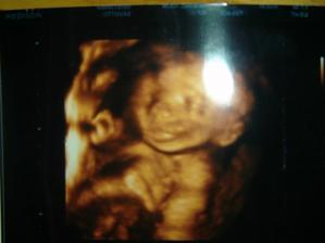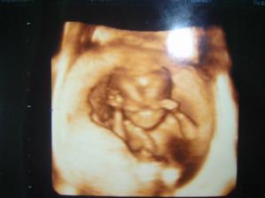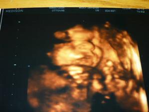 1/12/08: byli jsme na 3D ultrazvuku, miminko už nebylo tak klidné jako na předchozích UTZ, nedalo se pomalu ani zachytit, ale bude to prý z 95% holčička, máme radost!!!!!!!!! Je to pěkná čahounka (asi po mně🙂)), měří 20cm, váží 215g.