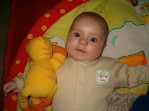 Anička se narodila 6.8.2010 ( 48cm a 2950g ) přirozenou cestou. Dnes jsou jí skoro čtyři měsíce a je to krásná usměvavá holčička, dělá nám jen samou radost 🙂.