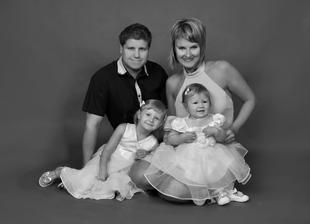 Naše kompletní rodinka před objektivem Gábi 3 roky Viki 1 rok