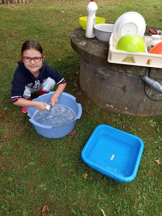 Co se v mládí naučíš....☺️ Končíme na chatě víkendový pobyt, a Viky sama chtěla umýt nádobí 😊 A můžu říct že byla fakt pečlivá ☺️👍