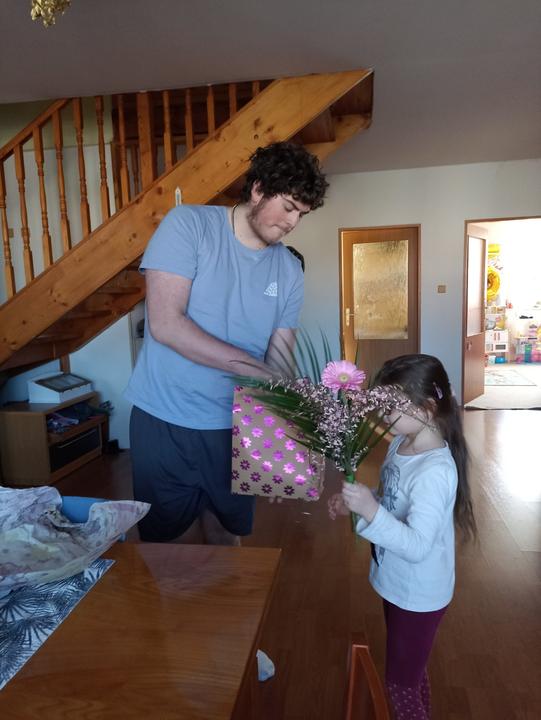 Vůbec jsem sem nechtěla dávat žádnou fotku. Vždyť má Viktorka jenom svátek, nejsou to narozky. Ale syn mě opět dojal a překvapil. Koupil své malé ségře k svátku nejen dáreček, ale i kytičku. Ze svých uškudlených peněz. Kdo četl mou nedávnou KZ, chápe jak je to pro mě dojemné a důležité 🤗