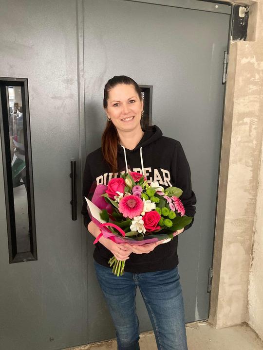 Dnes překvapení v práci... 💐 Ke včerejšímu výročí mi nechal manžel kurýrem poslat květinu 😍