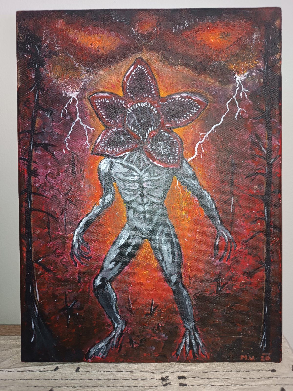 Viktorka zbožňuje Stranger things (my dospěláci ostatně taky 😅) A tak je smutná, že už seriál skončil. Proto jsem jí prostě musela na památku namalovat jednoho Demogorgona 🔥🎨 😀