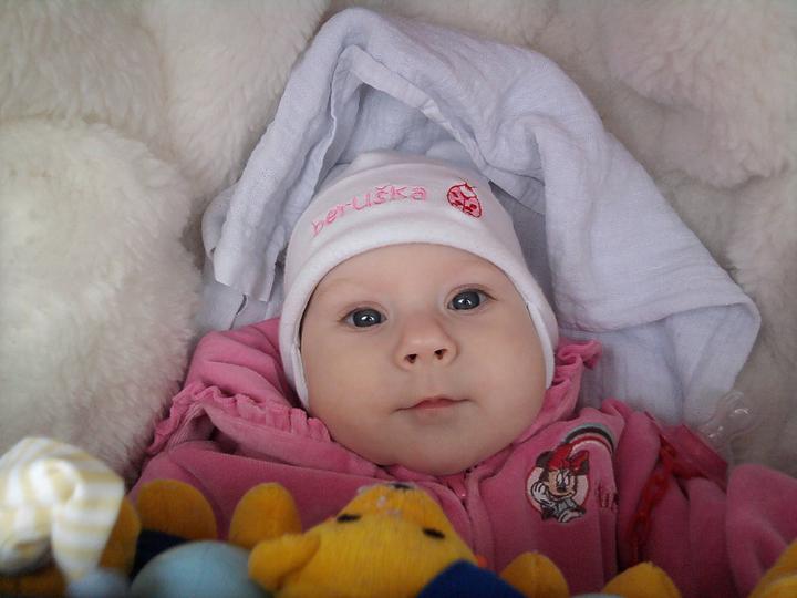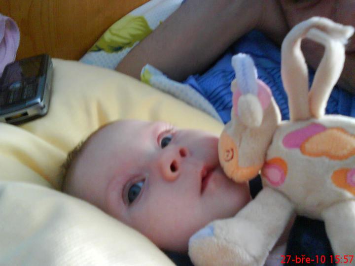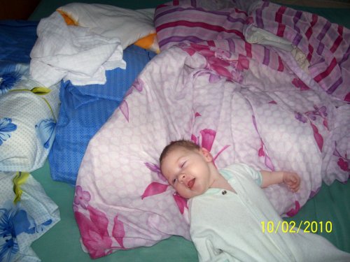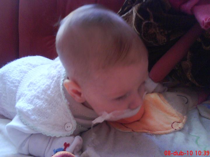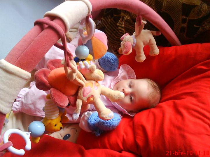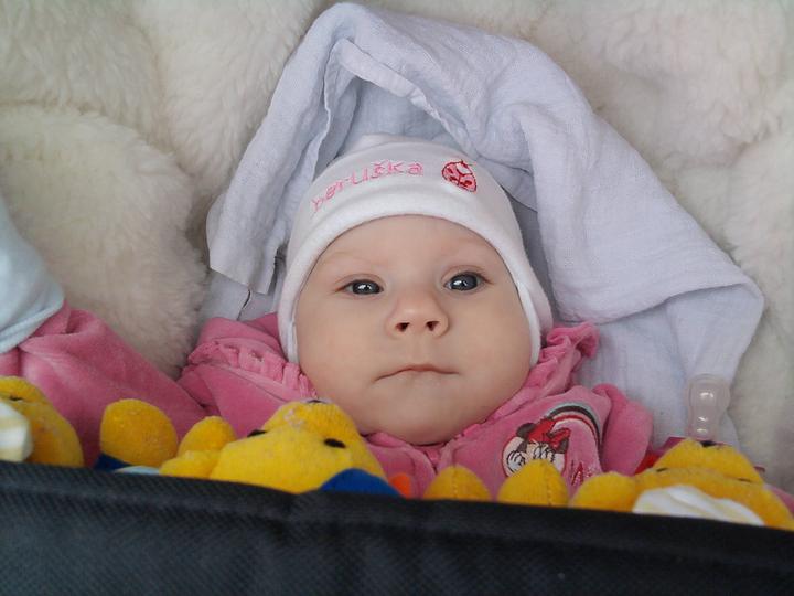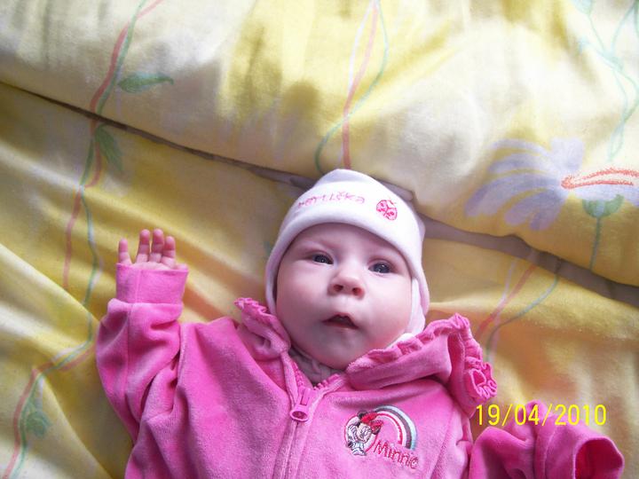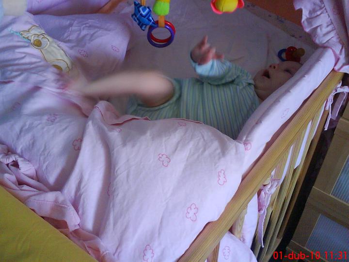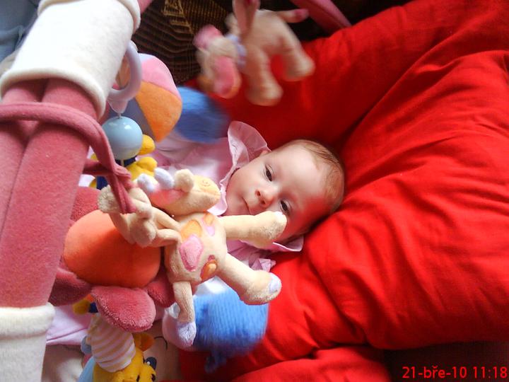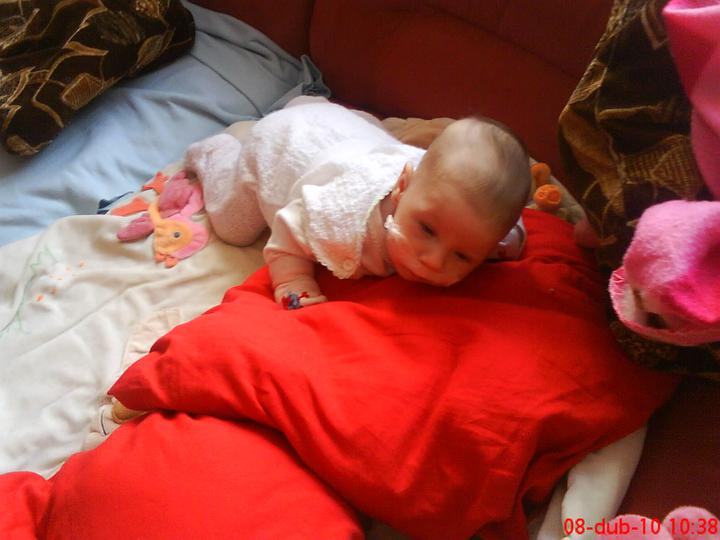 Dneska se Verča poprvé otočila z boku na břicho 🙂)))