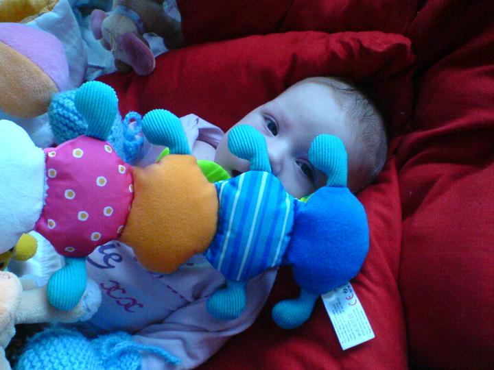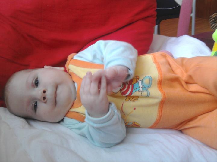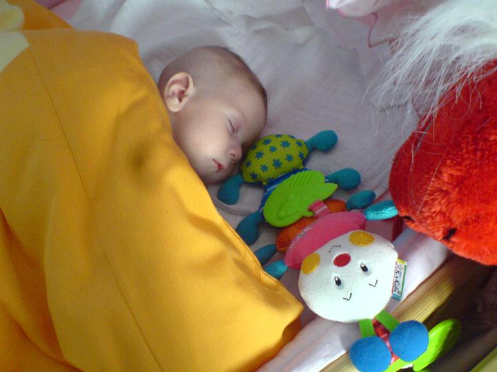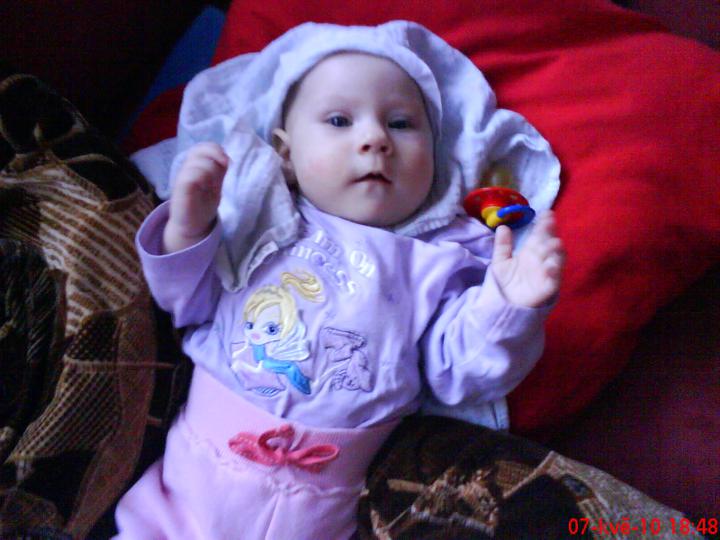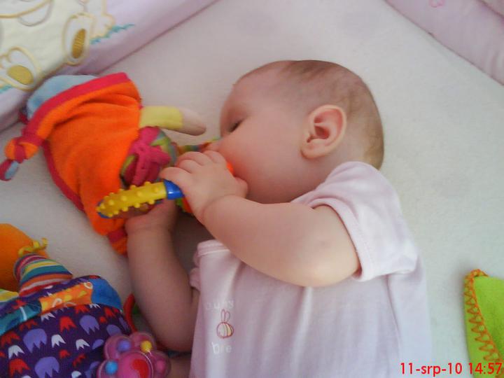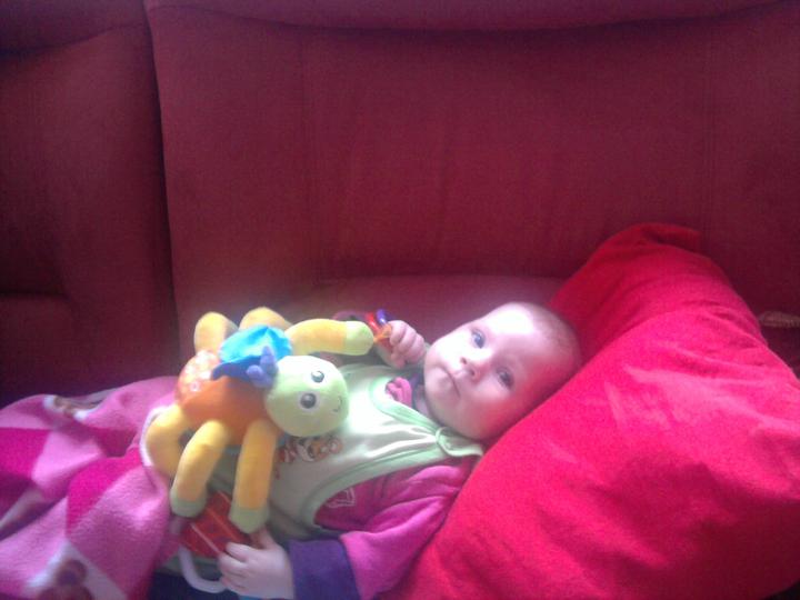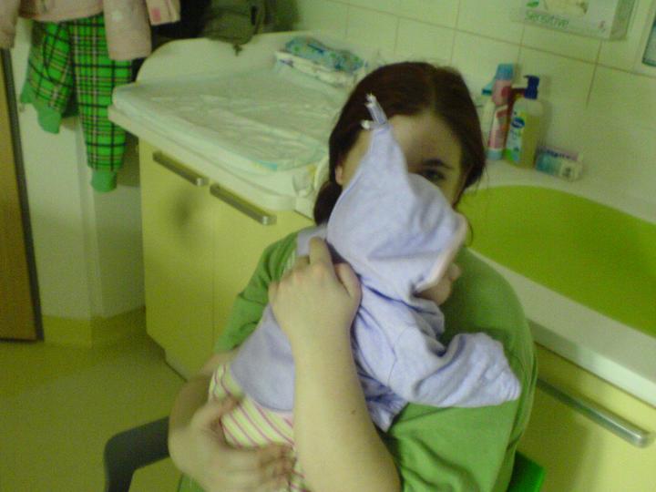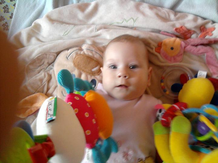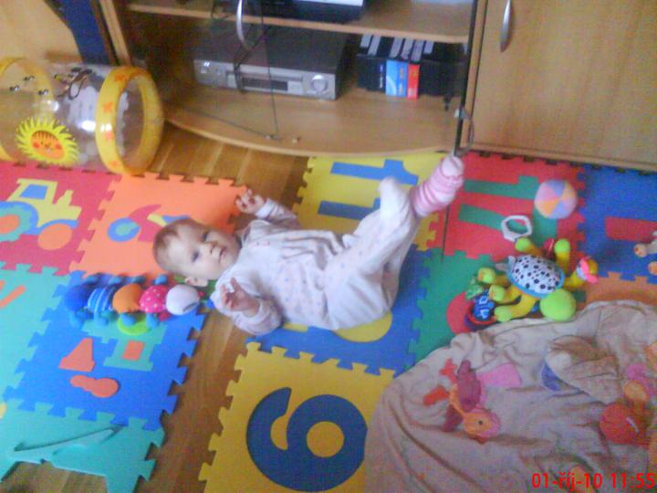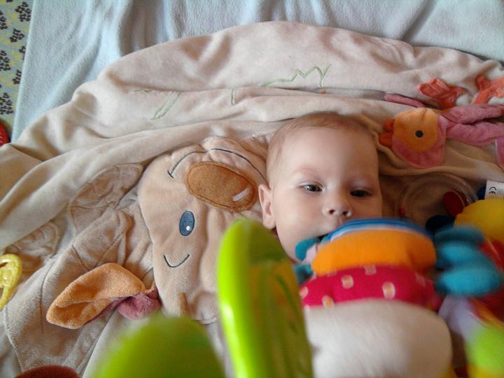 Dneska se Verča poprvé otočila z boku na břicho 🙂)))
