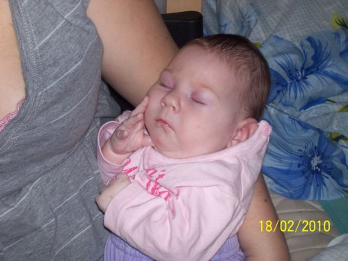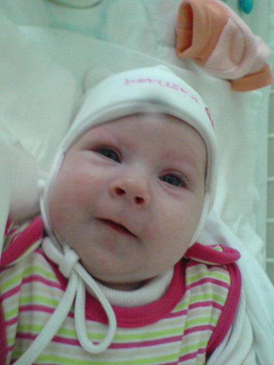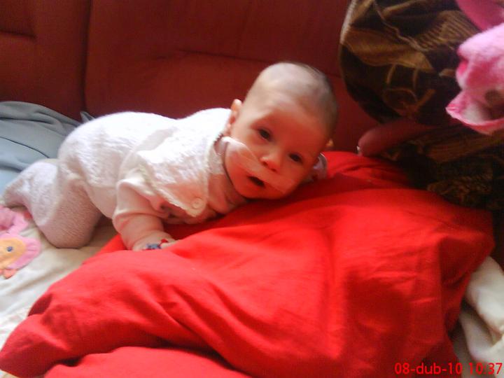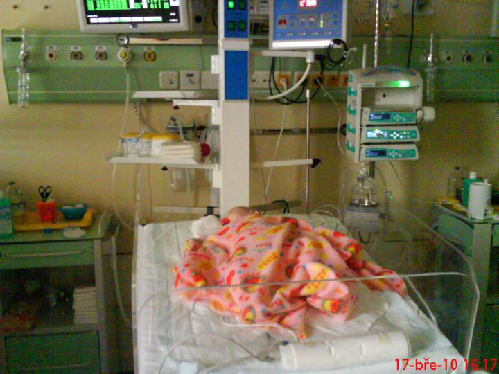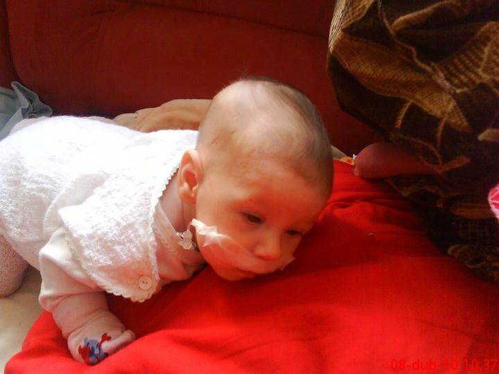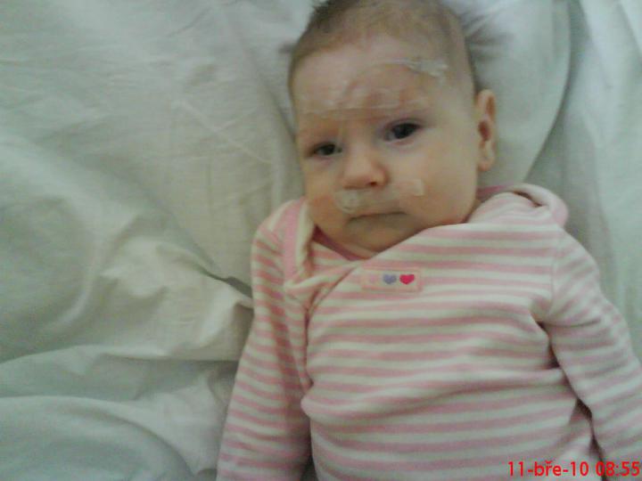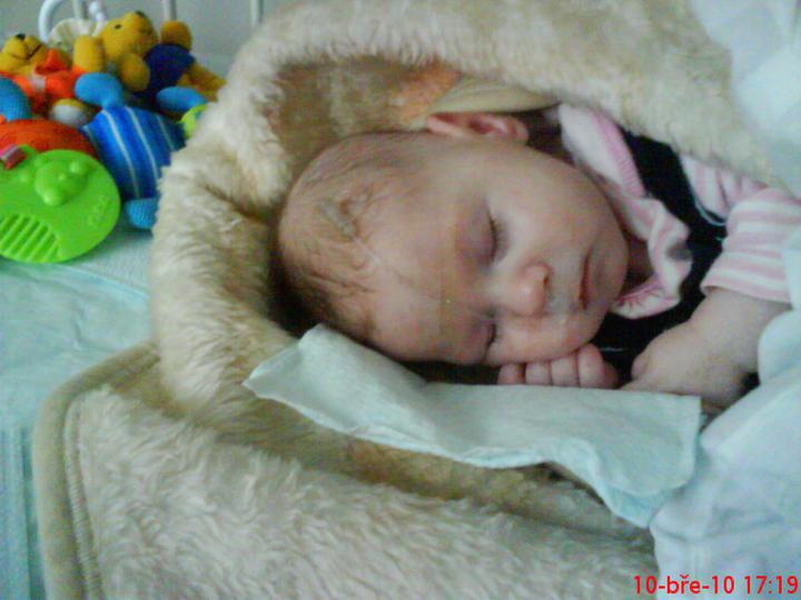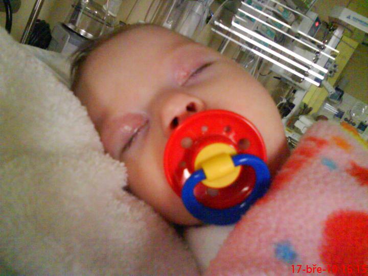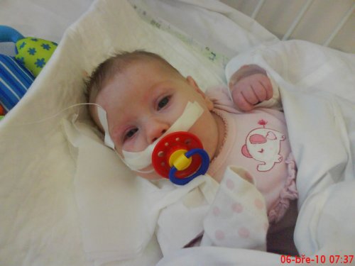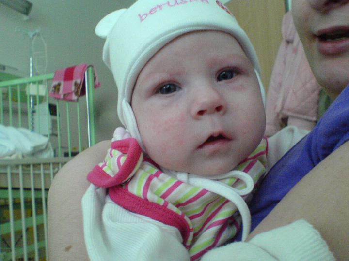 První setkání s VErunkou na Jipu nebylo nejlepší setřička nás zavedla na pokoj ve kterém bylo nějaké dítě které strašně zuřilo , když jsme přišly blíž byla to naše Verunka☹ Když mě viděla jen koukala jak jsme promluvila tak sputila šílenej vyrvál šílený její hlas byl někoho jiného a takhle vzteklou jsem jí nikdy neviděla. Ležela jen v plíně na ní ruzné kabely přes celé bříško šilená jizva a jen vyhaslé oči které na mě koukaly. Ze začátku to byl velky boj pomalu jsem se jí nemohla ani dotknout aby nezačala plakat ani nakrmit se ode mně nenechala prý to děti dělají je to jejich vzdor , že je tam rodiče nechaly a že jim dělaly něco nehezkého. Ale každým dnem se zlepšovala a zlepšovala a i náš vztah byl zase lepší a lepší . Po 14 dnech nás převezly na dolečení do Brna a po týdnu tam nás pouštěly takže po třech týdnech jsme valily domů.Propuštěni jsme byly jen díky tomu, že jsem se naučila píchat injekce dvakrát denně s léky , které pro začátek na chvilku Verča bude potřebovat. Dneska je to přesně měsíc a nikdo by nevěřil že Verunka podstoupila tak těžkou operaci. Jediné co tu operaci připominá je krásně se hojicí jizva na hrudníčku a její tikajicí uměla chlopeň🙂)))