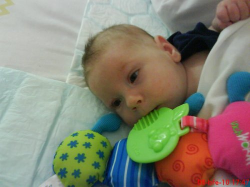 Naše Veru je velká bojovnice dneska je 4.7.2010 a právě přesně ted ve 12hod 30 min má půl roku života za sebou a já doufám a pevně věřím, že velkej kus před sebou. Dnešní stav je nad očekavání dobrý malá je probuzena s umělého spánku jen trošku ještě oblbá prášky na uklidnění , už je odpojena od dychacího přístroje, má vytáhlé dreny a zašitý hrudníček a už zkoušejí dávat mlíčko sice sondou a malá přes noc zvracela , ale prý i toto chce čas. Taky jí už vysadily jedny prášky na podporu srdíčka a i plíce vypadají dobře.Tak jen tak dál Veru 🙂