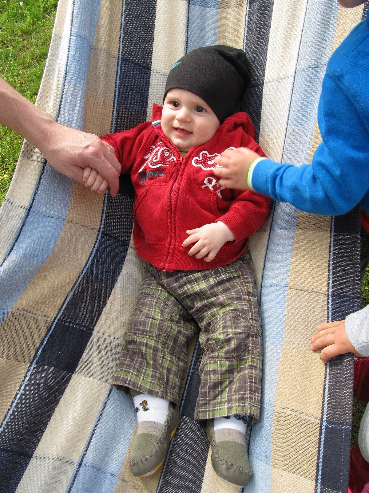 Elínek na zahradě u tety Markétky a strejdy Davčinky