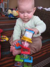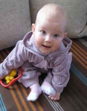 Oslavili jsme první rok. Vážím 9 kg a měřím 76 cm. Stoupám si a chodím okolo nábytku, ale samotný mi to ještě nejde. Brebtám o 106 a krámovat šuplíky umím na jedničku 🙂