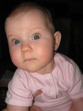 .. Je nám už 8 měsíců a rosteme jako z vody.. máme 73 cenťáků a 8,2 kilo. Vylejzají nám dva zuby, sedíme, koulíme se, chvíli vydržíme stát u stolečku nebo sedačky a snažíme se plazit.. ale když ta prťka je táááák těžká 🙂