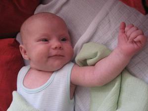 Na měsíční kontrole jsme počůrali sestřičku, když nás vážila. Nicméně i tak jsme dostali pochvalu, protože mám už 4,5 kila.