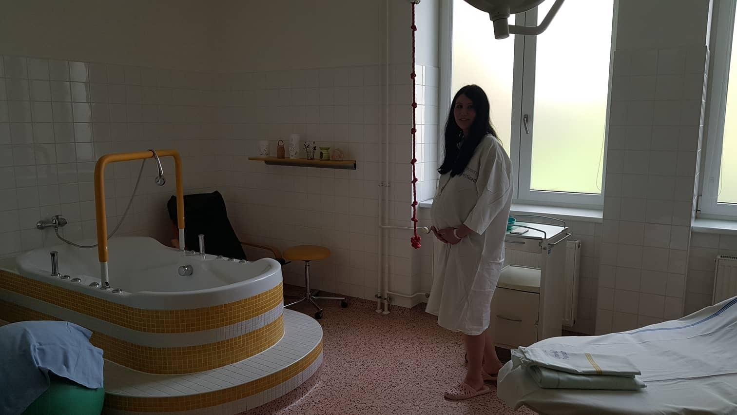 Poté, co jsme přijeli do porodnice mi zase měřili půl hodiny ozvy a pak mě přišel vyšetřit pan doktor. Ten konstatoval, že sice rodím, ale že porodím s největší pravděpodobností až ráno. Proto další jeho otázka byla, zda nechci jet ještě domů. Nesouhlasně jsem na něj kývla, že raději už zůstanu. Cítila jsem, že to brzy přijde. Sestřička mi přinesla košili a náramek na ruku, vzala si ode mě těhotenskou průkazku a další potřebnou dokumentaci a zavedla mě rovnou na porodní box. Měla jsem ten den štěstí, rodila jsem tam sama, takže mi byl přidělen největší box s masážní vanou, koupelnou a relaxačními pomůckami, které měly ulevovat od bolestí.