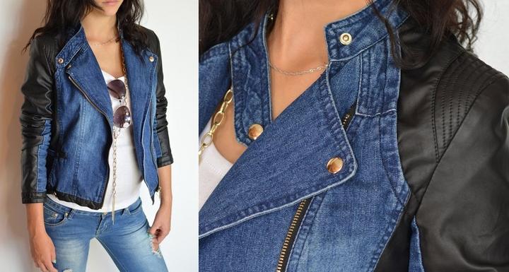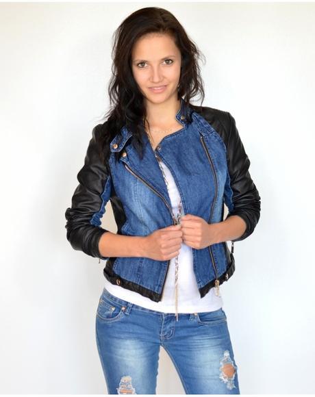 Ramoneska bunda jeans ekokůže biker XS-S-M-L-XL 599 Kč