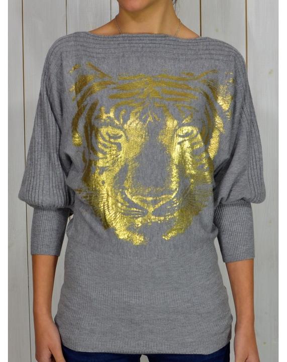 Módní měkký svetřík s tygří hlavou - 289 Kč