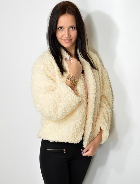 Elegantní stylová kožíšková bundička sako beige & black 469 Kč