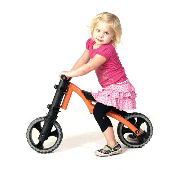 Sice by se dalo říct, že dětské kolo velikosti 12 palců by bylo díky balančním kolečkům ideálním nástrojem pro první cyklistické pokusy, jenže je tu jedna nevýhoda. Balanční kolečka sice udrží stabilitu, ale výška sedla je v nejnižší pozici stále 42 cm nad zemí.