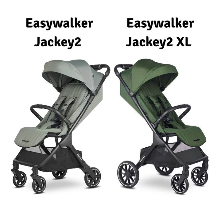 Easywalker Jackey2 nebo Easywalker Jackey2 XL se od původních modelů Jackey a Jackey XL liší pouze novým prošívaným designem sedadel, jemným prodloužením celkové délky stříšek, ale hlavně zjednodušeným nastavováním a zapínáním 5 bodových bezpečnostních pásů.