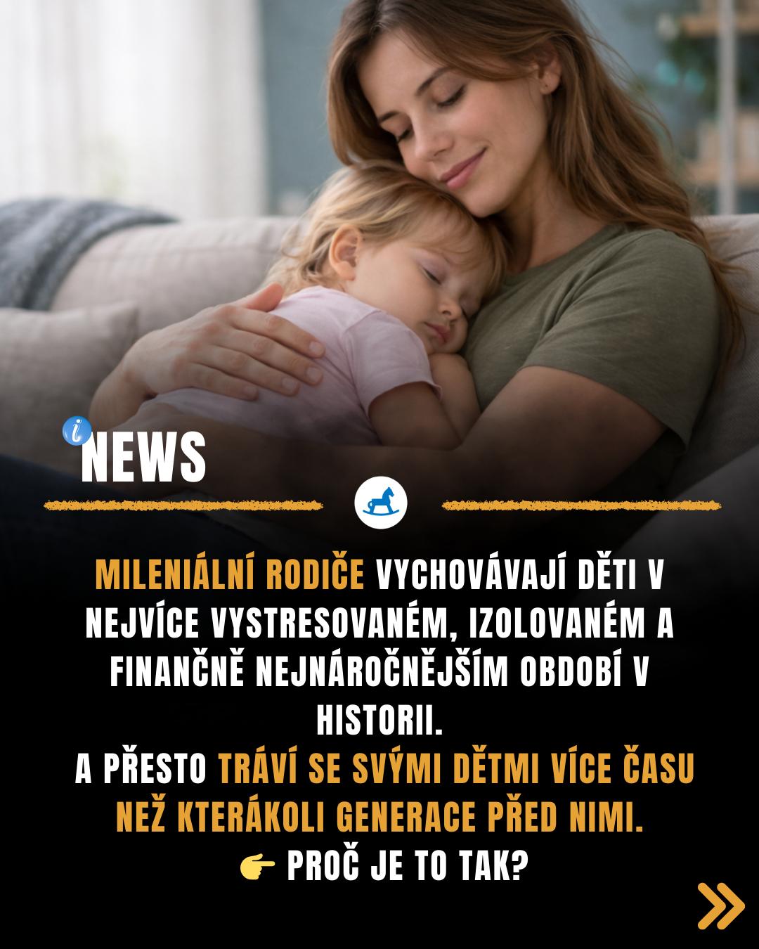 Mileniální rodiče jsou dnešní třicátníci a čtyřicátníci. Generace lidí, která vyrůstala ve světě bez chytrých telefonů, ale dospělost už žije v neustálém online prostředí. Jsou to rodiče, kteří kombinují péči o děti s vysokými pracovními nároky, nejistotou bydlení a tlakem na výkon.