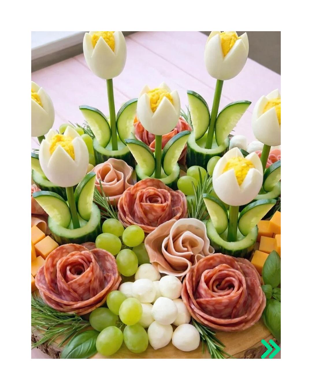 - Přírodní detaily: Mezi plátky šunky a sýra zakomponuj jedlé květy nebo větvičky čerstvého rozmarýnu. Celkový dojem umocníš, pokud mísu položíš na dřevěný podnos.