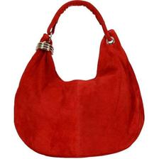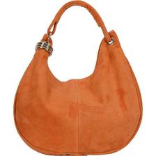 Praktický model kabelky vyrobený z pravej brúsenej kože zdobený kovovými krúžkami.