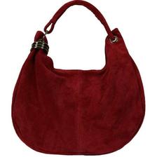 Praktický model kabelky vyrobený z pravej brúsenej kože zdobený kovovými krúžkami.
