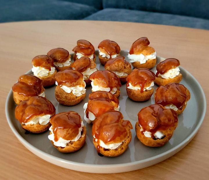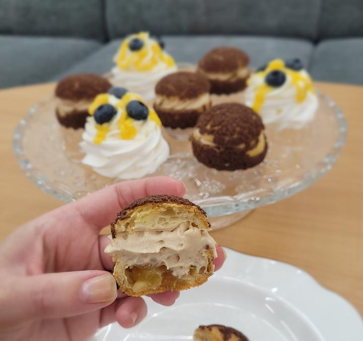 Takže většinu s krustou jsem zamrazila a upekla i tady tyhle pufíky, naplní se šlehačkou a jako když najdu.