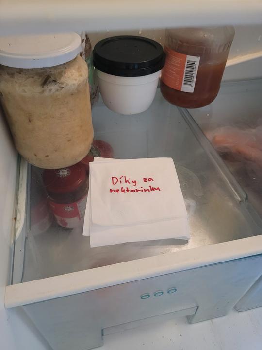 Stejně nebude přes víkend doma a ta nektarinka by zplesnivěla...