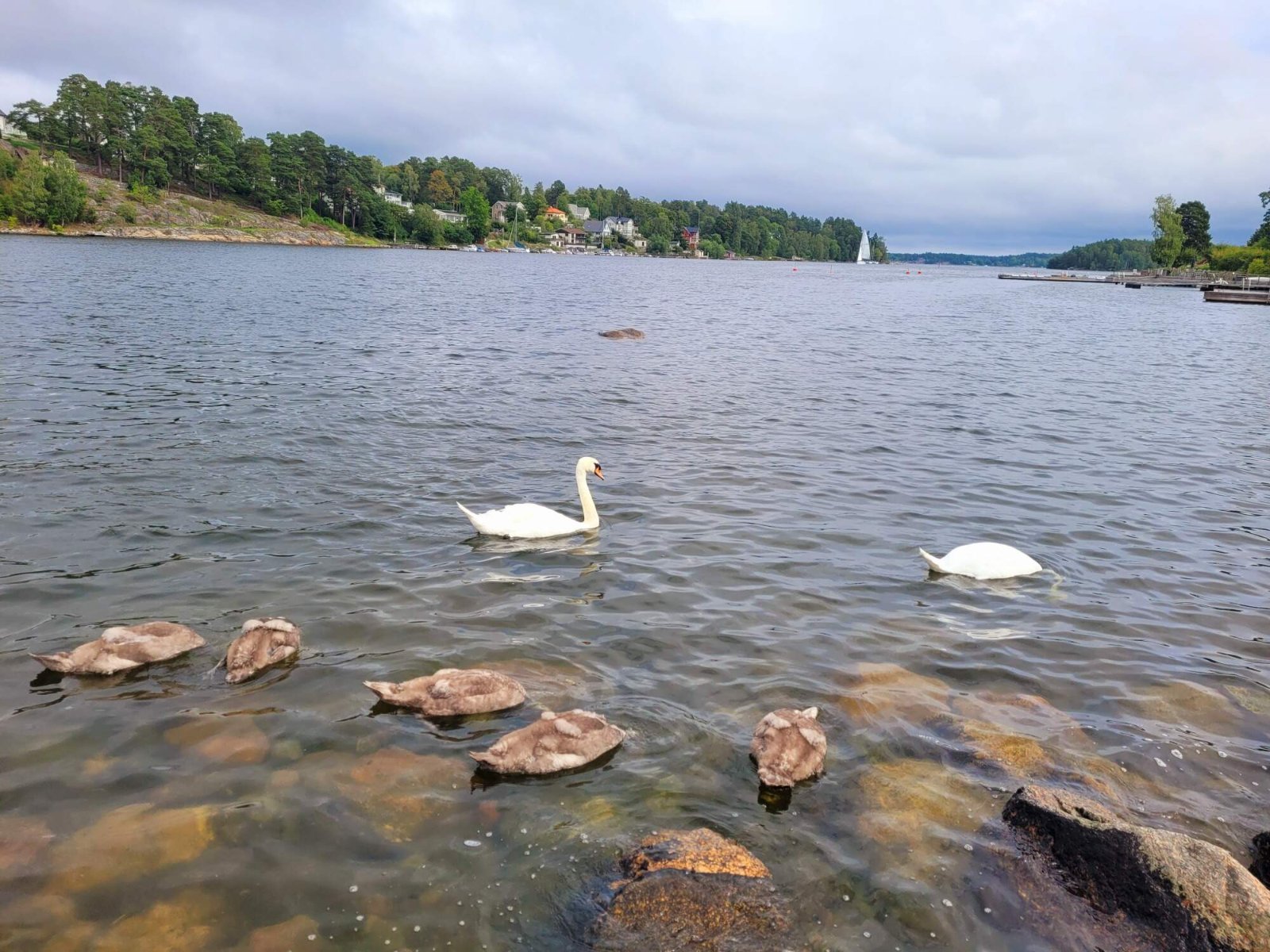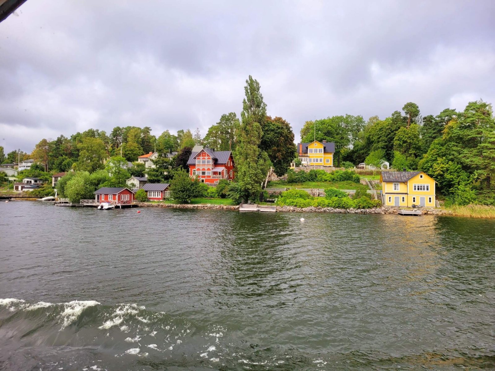 Druhý den, pátek, nás po vydatné snídani čekal lodní výlet. Jak to vypadá? To se takhle večer v posteli podíváte na Google mapy a naslepo ukážete prstem na jeden z ostrovů a řeknete si, že se zrovna tam vydáte. No a Google mapy vás tam dovedou. Ukážou trasy autobusu a lodí, vypočítají cenu. A tak jsme se za necelou hodinu ocitli na ostrově ničeho, snad i Bullerbyn v knížce byl větší. Za celou dobu jsme potkali jenom jediného člověka, a to ještě na druhém ostrově.
