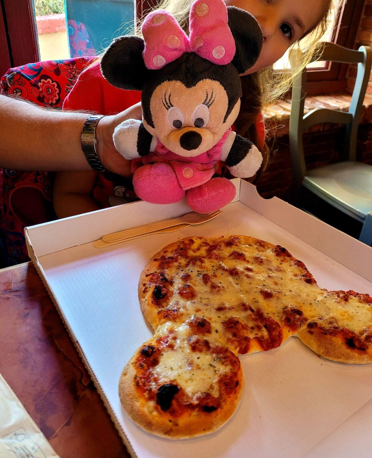Jídlo a pití je možné vzít si do Disneylandu vlastní a obzvlášť to pití je důležité. Ale jídlo nee. To nemá cenu. Ty vaše housky se salámem nemůžou konkurovat tematickému občerstvení. Taky jsme se nechali zlákat - pizza, sendvič, koblížky, všechno ve tvaru Mickeyho. Dokonalé!