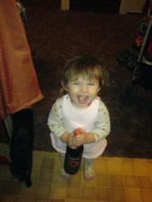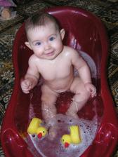 A jak to bylo? No ....... V pondělí 4.6.2007 jsem šla poprvé do poradny v porodnici, po vyšetření mi doktorka řekla, že jsem otevřená na 3 cm a že začínám rodit. Mojí jedinou odpovědí bylo, že mě se ještě nechce 😀 Poslala mě na monitor, nic tam neviděli a tak jsem šla domů. Ve středu 6.6. jsem měla sraz s tátou, že mě vyzvedne u metra, "odevzdá" autobus na garáž a pojedem do knihovny pro knížky, pak na oběd a dom ... No od rána už Jára koukal na hodiny a že jestli nechci jet raději do porodky. Jsem ho odhadla, nechtělo se mu do práce. Z domu jsme vyrazili společně, u metra jsem počkala na tátu, dojeli jsme na garáž. Po cestě do knihovny se mě ptal, zda to nemá raději vzít do porodnice. Řekla jsem, že ne, páč jsem neměla nic na čtení. Knížky jsem si tentokrát vybrala velice rychle, pak jsem tedy svolila pro otcův klid, aby mě odvezl do porodky. Chtěl mě dovézt až před pavilon ke vchodu, ale já ne, že se ještě musím projít (byl velmi horký letní den a já se vařila i v šatičkách na ramínka). Po cestě jsem si nazapomněla ještě pohladit koťátko, co tam hopsalo. Příchod do porodky 11:45 hod. Tam mě vyšetřili s tím, že jsem otevřená na 5 cm a prý dáme klistýr. Ještě jsem zavolala Jarouškovi, že může odejít z práce a já mu napíšu omluvenku. Vzala si mě porodní asistentka, napustila klistýr a prý ještě to raději překontrolujem, pak klistýr vypustila, prý nic nebude, že bysme to nestihly 😀 Hupsla jsem do spršky - jak byla příjemná - pak na sál, tam jsem si sedla do křesílka a houpala se a četla knížku, když dorazil Jára. To už bylo 12:45 hod. Asistentka žertovala, že jestli nedorazí do 10 minut, tak to už nestihne. Chudák byl celej spocenej a ulítanej a ustaranej a v tom zeleném mundůru .......... 😀 Zelená mu vůbec nesluší 😀 Jak přišel, tak jsem si vyskočila na stůl, píchli jsme vodu 3x jsem zatlačila a bylo to ..... Andulka byla na světě, tatínek si jí šel pohlídat, když jí umývali a vážili. Mě jen prohlídli, nebyla jsem ani nastřižená a ani natržená 😉