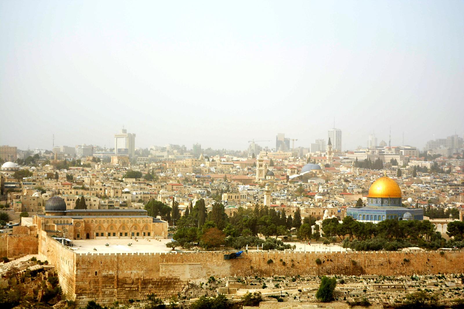 Hned nad Zdí nářků je muslimská část - Chrámová hora, kde se nachází mešita al-Aksá pro tisíce muslimských věřících a také asi na pohled nejvýraznějsí budova Jeruzaléma - islámská svatyně s ikonickou pozlacenou kopulí Skalní dóm.