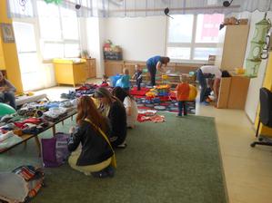 Na sraz přišlo 12 maminek s 9 dětmi 🙂 Donesly jsme věcičky na prodej, jen škoda, že se nás nesešlo malinko víc, lépe by se zobchodovalo. Takhle v komorním počtu jsme si spíš popovídaly a sdílely zkušenosti, i když i nějaké obchůdky se uzavřely. Také jsme nakoukly na veřejnou burzu, která v Centru probíhá celý týden.