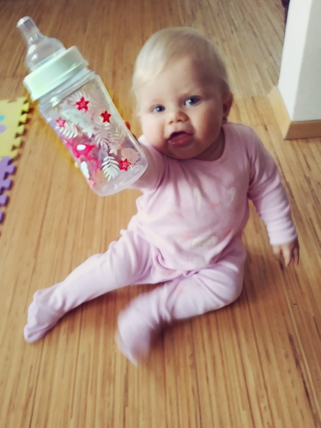 Balíček nám domů přišel přesně v den prvních narozenin mé dcery. Takže hned ráno si mohla rozbalit první dáreček. Zatím teda moc na rozbalování není :( tak snad to do Vánoc ještě natrénujeme. Kromě ohřívačky přišla i krásná láhev a omalovánky s pastelkami. Anežku teda nejvíc zaujaly pastelky. Ale ty ji schovám ještě na později.