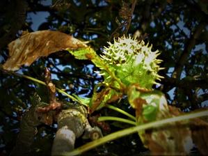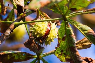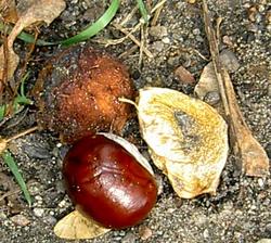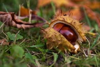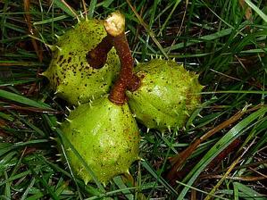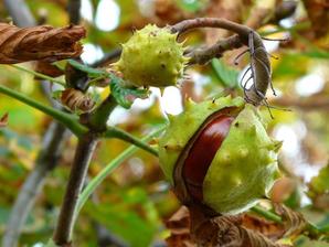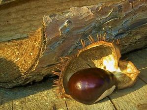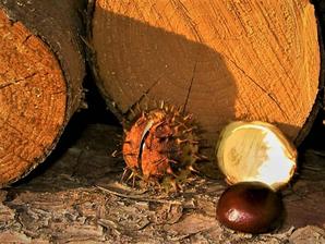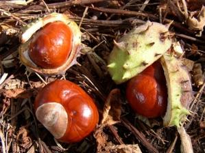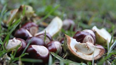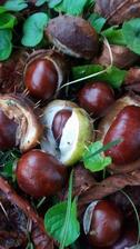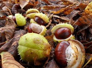 kaštany padají na zem.